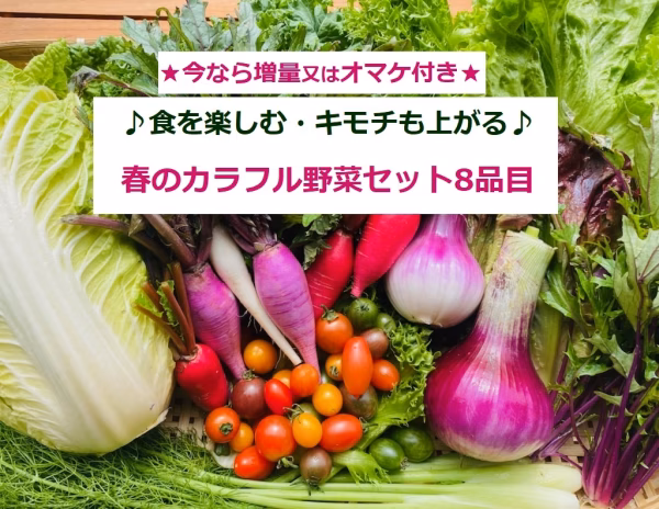 80サイズ朝採り【味濃い野菜】春のカラフル野菜セット8品目です。