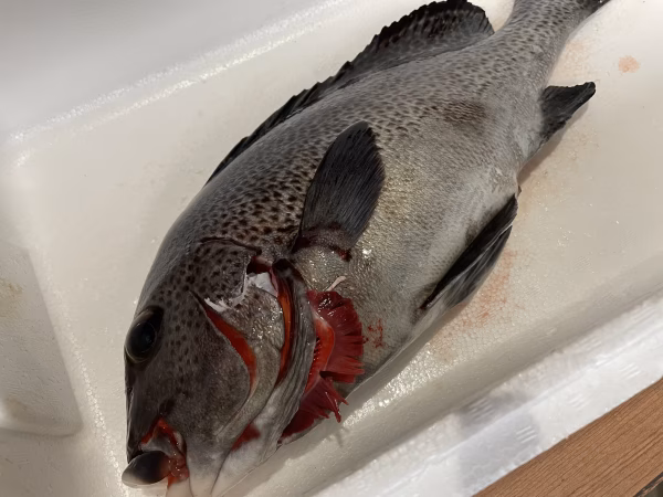 素潜りでの魚突きで捕獲しています。常に頭、エラ付近を狙うように意識していますが、体に撃つ事もあります。