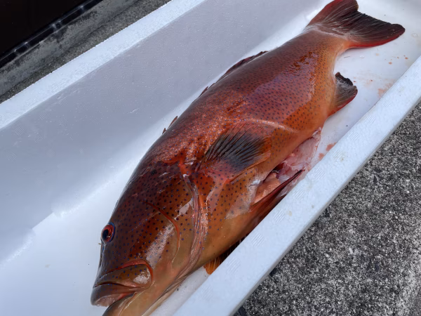 素潜りでの魚突きで捕獲しています。常に頭、エラ付近を狙うように意識していますが、体に撃つ事もあります。
