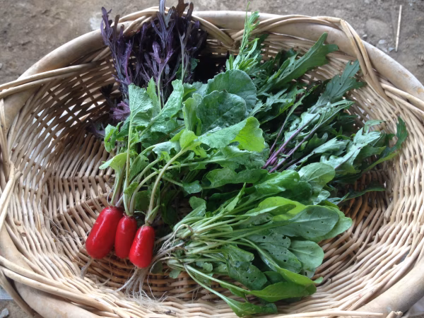 キャベツ、レタス、小松菜、ルッコラ、かぶ、大根、ブロッコリ、チンゲン菜などの中から5種類をチョイスしてお届けします。