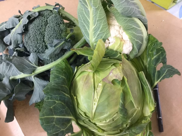 葉つき玉ねぎ3キロとキャベツに、カリフラワー、ブロッコリー