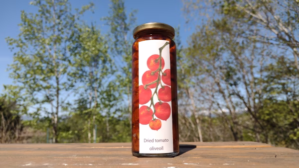 夏の陽射しをたっぷり浴びたチェリートマトをセミドライにし、シンプルにオリーブオイルとにんにく、塩のみで作りました。ぎゅぎゅっとうまみが濃縮されています。