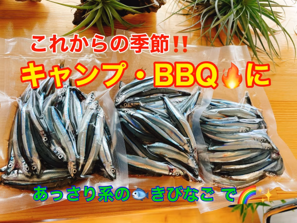 キャンプの脂ぎった肉類と違い あっさり系 高タンパク低脂肪・カルシウム満点 のきびなごをいかがでしょうか🤗❓