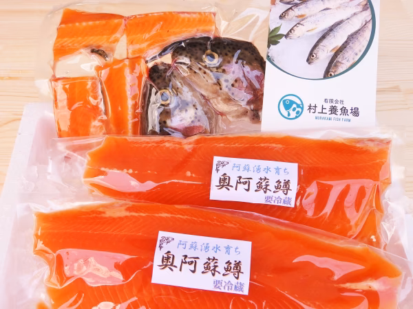 世界農業遺産に認定された奥阿蘇の豊富な湧水で、阿蘇の酒「霊山」の酒粕を練りこんだ餌を食べて育ったブランドマス「奥阿蘇マス」。