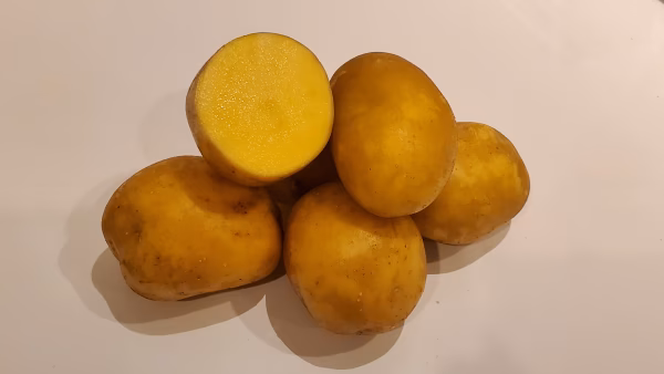 インカのめざめは生産量が少ない希少な品種です。大きさ比較的小柄なタイプのじゃがいもです。そして、大きな特徴はなんと言っても、切ったときの断面の色!濃い黄色なんです。栗のような濃い黄色をしています。味も濃厚な味わいで甘さとコクがあり、食感はしっとりねっとりした感じです。『今まで食べたじゃがいものなかで1番!』と言われるお客様がいらっしゃるくらいです。ぜひ!ご賞味ください!!!