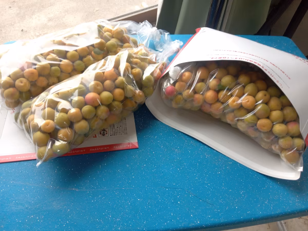 - 今年の小梅は良い実が少ないかと。収穫して冷蔵庫に保存した分で出品します。数が少なくてすいません。