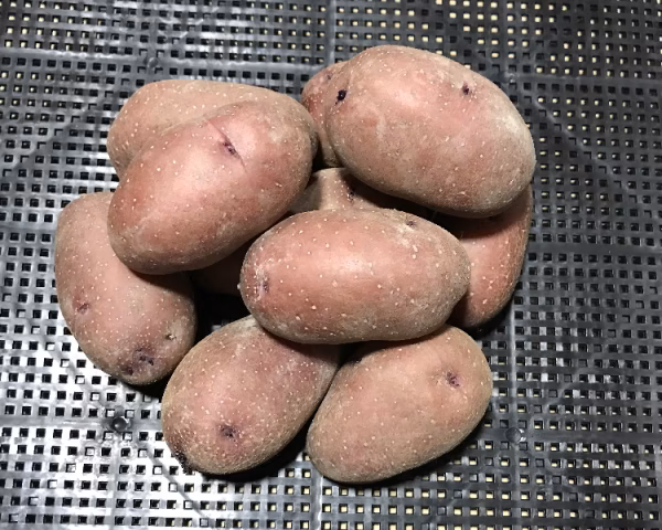 インカルージュは、インカのめざめを栽培する中で、茎と皮の色が赤く変化した株から収穫されたイモを栽培して作られました。 皮が鮮やかな赤紫色で、中は鮮やかな黄色が特徴の新品種です。黄色い肉質にはカロテン(ビタミンA)が豊富に含まれています。