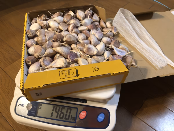 ▼自己紹介 はじめましてのお客様。すでに複数回ご購入頂いているお客様。 この度は雪乃屋の商品をご覧いただきありがとうございます。 にんにくの収穫後、3週間程度もあれば乾燥が仕上がると鷹をくくっていたところ、過去ほとんど例を見ない九州地方の早期梅雨入りのおかげで他の農作業等と込み合い出荷まで手も回らずかなりてこずりました。。。 先日からようやく乾燥工程もひと段落、調整に入り始めたところです。 早速ですが(ひと段落記念?としまして)期間限定となりますが新商品を(勝手に)提案させていただきました。 寝ても起きてもにんにくのことが頭から離れない方あなた。1日ひと球は食べないと落ち着かないあなた。そんなお客様にぜひ純国産にんにくをご賞味いただきたくお手に取りやすい形でバラとして売り出しさせていただきます。 このようなご時世ですがにんにく(もち麦もね)で乗り切っていきましょう! 雪乃屋代表 松永幸治 ▼商品概要 にんにくバラ詰め込み 1450g (それ以上をめざします。) クロネコ宅急便コンパクトの重量無制限箱を満載。 開封時はご注意ください。 保存用にネットをひとつお付けします。 ▼数量、分量の目安 1450g ▼注文に際しての注意点(配送方法や納期指定など) 注文殺到した場合には出荷まですこしお時間をいただくかもしれませんのでその際は、ご了承おねがいいたします。