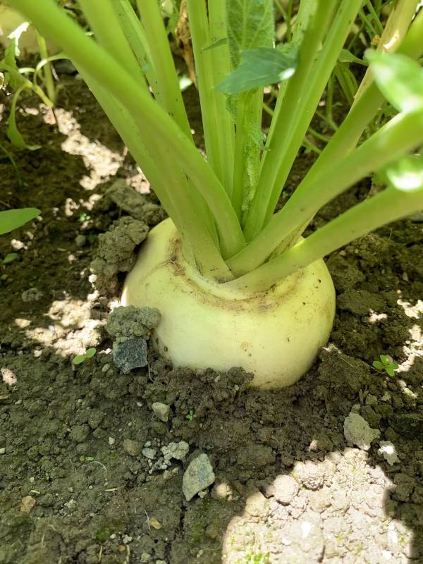 冬カブのように寒さに当たっていないので、若干の苦味があるかも知れません。