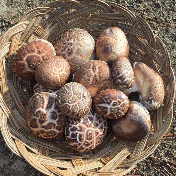 屋外のほだ場でゆっくりじっくり育ちました。見た目の悪さはご容赦ください!