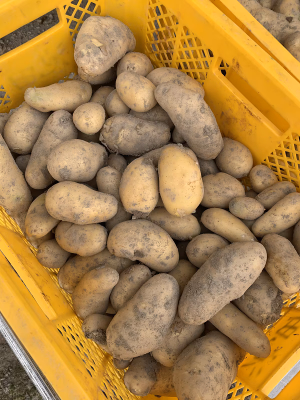 淡路島で育てたじゃがいも「メークイン」です。形は不揃いですがおいしいですよ!暑いこれからの時期、カレー、ポテサラ、肉じゃがにと食物繊維をとって、乗り切りましょう!