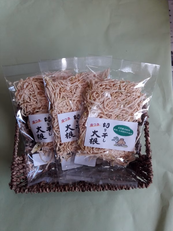 奥羽山脈からの自然水で育った大根を美味しさと栄養を凝縮させて作った皮付きの切り干し大根です。