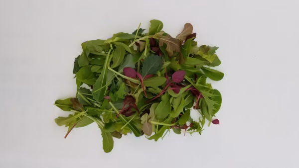 ベビーリーフは、デトロイト(ビーツの葉)、ルッコラ、水菜等のアブラナ科、ロロロッサ、レッドボール等のレタス系のリーフの中から、8~10種類をミックスしております。