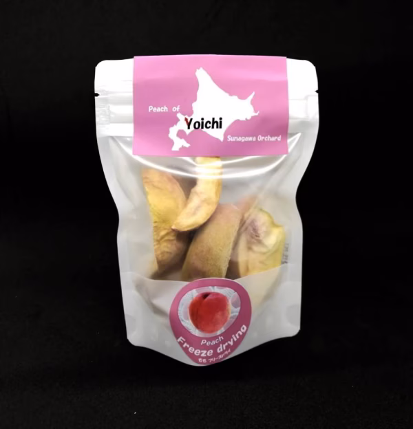 北海道有数の果物産地、余市町のフルーツの魅力を多くの皆様にお届けしたいとの想いから、自家の自慢の果物、桃を皮つきのまま、まるごとフリーズドライにしました。