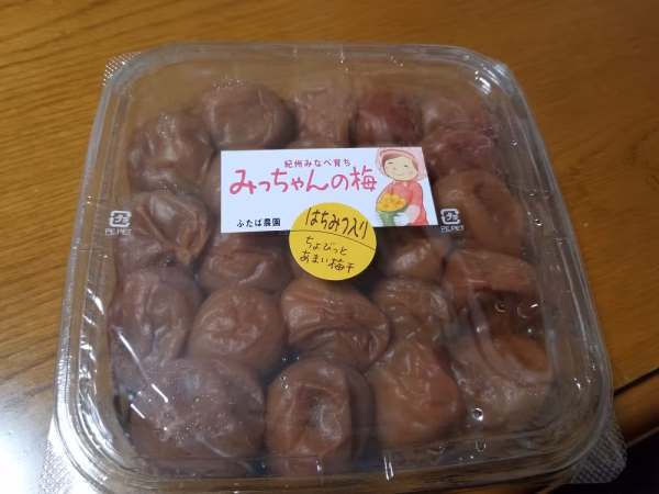 みっちゃん家で漬けた梅干しを 少し塩抜きし、はちみつ入りの調味料に漬けて 味付けしています。