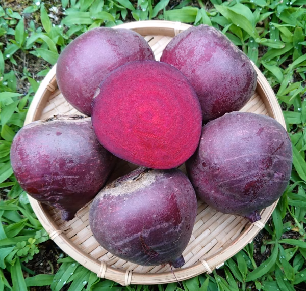 ビーツは『奇跡の野菜』と呼ばれるほど栄養豊富な真っ赤な野菜です。少し土っぽい味と甘味が特徴的。ボルシチの材料として有名ですが、他にもピクルス、ポタージュ、きんぴら、スムージーなど色々なお料理にお使いいただけます。ポテトサラダに茹でたビーツを混ぜると綺麗なピンク色に♪シンプルにビーツを味わうには茹で、蒸し、ロースト、ホイル焼きなどがおすすめです。