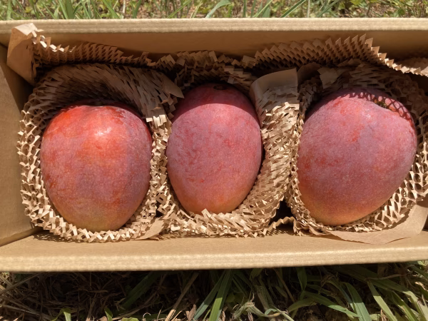 奄美完熟マンゴー❗️販売開始です❗️ 予約から先に発送させていただきます。 予約注文が済み次第、順次発送になります♪ 樹上完熟をしていますので収穫、発送日時はマンゴーさん次第になります^ - ^ 奄美大島完熟マンゴーは加温をせず、自然の温度変化に合わせてじっくりと手間をかけて育ています。品種はアーウィンで外皮は明るい紅紫カットしてみるとびっくり❗️明るい橙色。 完熟ならではのとろける食感、溢れる果汁、芳醇な香り。食べ頃のマンゴーを 白無地に1kg以上入れてお届けします。 栽培上、葉に隠れて色にムラや擦れたあとなどが入りますのでご家族としています。 また、2024より 小さな農家ではありますが、畑や土地と近く関わる 一人の人間として何か、環境に還元可能な 仕事にチェンジできないか?と取り組みの中、 畑作業の中では 分解性マルチの導入、 やっと今年から全て分解性マルチになりました 私たち的にとても嬉しいことです♪ マルチ使用の削減、 分解性も含めてマルチ利用の削減 に務めております 今回、考えた末、出荷梱包時の フルーツキャップ削減を目指して ご家族向きの商品は クッションペーパーでマンゴーを包み 緩衝材としています。 ご理解とご協力、 また小さい農家の小さな挑戦に ご興味のある方はぜひ、これを機に 奄美のマンゴーをお手にとってみていただけると嬉しいです♪