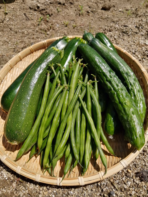 今が旬の、朝採り新鮮なきゅうり、ズッキーニ、いんげんのセット販売のご紹介です。