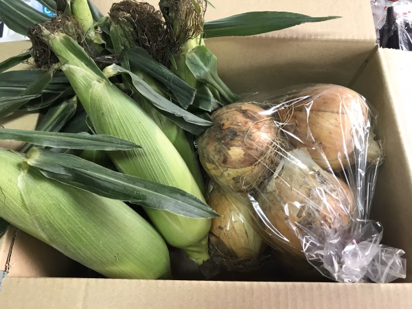 とうもろこし(ゴールドラッシュ)と玉ねぎのセットです。