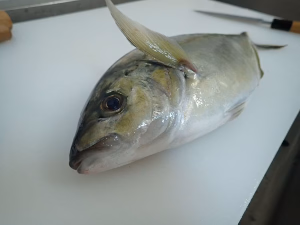 シマアジは皆さんがよく目にする鯵(あじ)とは違い、鯵のなかまでありながら上品なブリに近い味わいで高級魚で、スーパーなどではなかなか見られません。