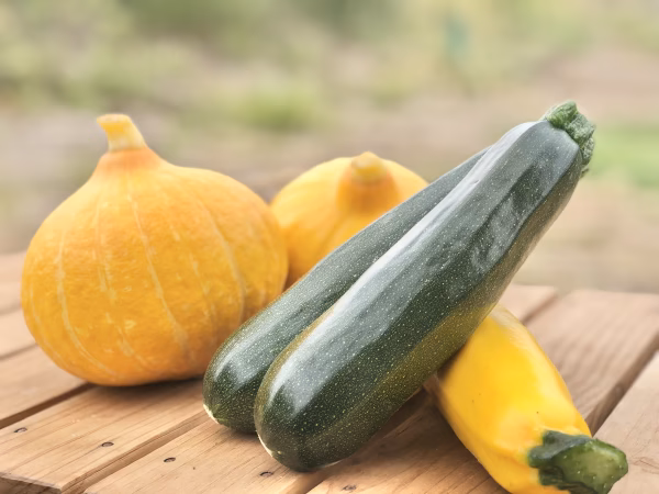 わたしたちが大切に育てたコリンキー(サラダかぼちゃ)と、ズッキーニのセットです。