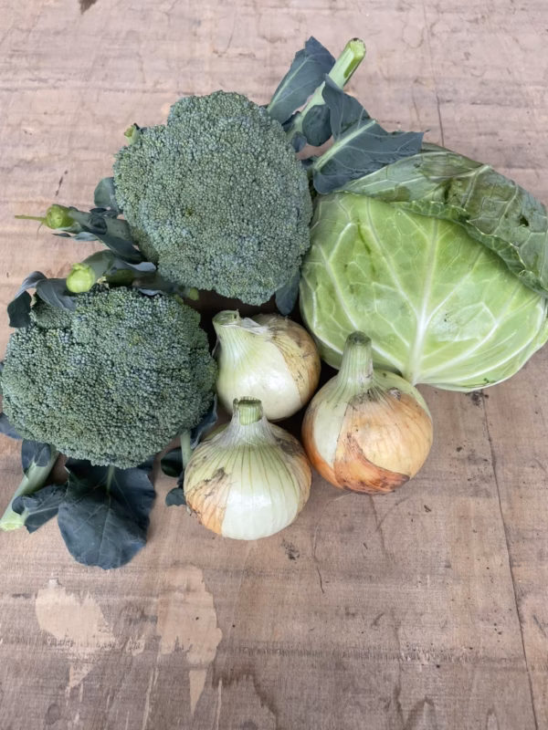 80サイズの箱に、キャベツ1個、ブロッコリー2~3個、新玉ねぎ約1kg