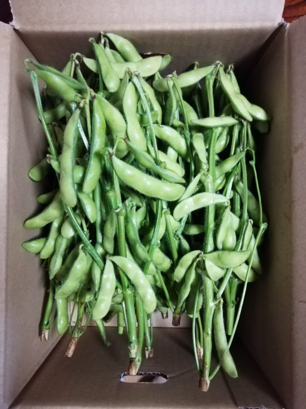 また当農園は機械による選別を行っておりません。収穫→葉っぱ取り→調整作業→箱詰めまですべて1本1本手作業です。手間と時間はかかりますが、極上の綺麗な枝豆に仕上がっていきます。