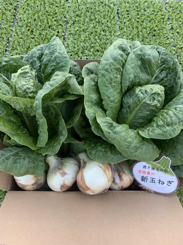 新玉ねぎ約1kgとロメインレタス2個のセット商品です。