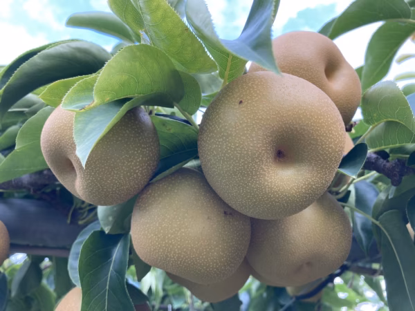 甘みが強く、優しい酸味があり、滴り落ちるほど豊富な果汁が特徴の梨です。