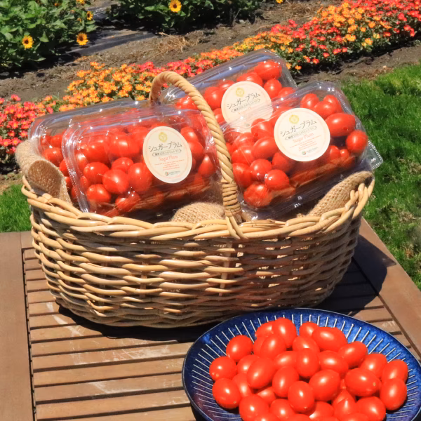 当社で育種した新種のフルーツのようなミニトマト「シュガープラム」を