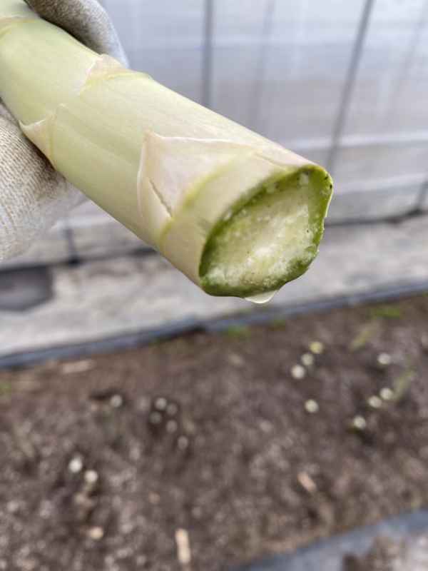 ▼自己紹介 子育ても終了し畑作と水稲は旦那さん担当でアスパラ60M4棟を独りで管理と販売を任されております。 ▼商品概要 柔らかく、瑞々しい、えぐみのない甘さ、繊維が残らない❗️ ▼品種・味の特徴・食べ方 ガリバーと言う品種で3年目より太いアスパラが伸びてきます。秋にビニールを外し雪の下にし春の雪解けを待って出てきたアスパラは甘味があり瑞々しいです。 塩を多目に入れて茹でたアスパラが最高です。 繊維が残らず出来るだけ全て食べられるように育ててます。 気になる方は下をピューラーで引いて初めは下を2分半次に穂先を1分半程茹でてみてください。後はお好みの固さで料理してみて下さい。少し硬めが甘味が出てお勧めです。 ▼数量、分量の目安 ▼栽培/生産方法、こだわり ハウス栽培といえどアスパラはデリケートで繊維が残らない様瑞々しい事に集中して水を与え過ぎるとアスパラに亀裂が入ってしまったり空洞になってしまいます。商品にならなかったりする事が1番辛いですね! ▼注文に際しての注意点(配送方法や納期指定など) 朝収穫したアスパラをチルドでいち早くお届けします。
