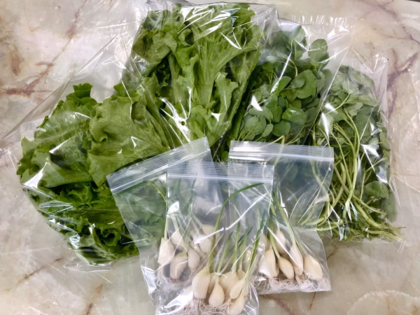 今回出品の野菜は緑の3点セットです。 玉レタスより栄養価が高く、柔らかくて美味しいリーフレタスと、毎度おなじみ栄養100点満点シャキッとクレソン。そして、食べすぎ注意、お箸が止まらなくなるにんにくスプラウトのセットになります。 にんにくスプラウトは根っこから芽まですべてたべれる優れもの。 火を通せば次の日に匂いが残りません。 おススメはシンプルに素揚げに塩。時間短縮ならレンジでチンしてから料理するとすぐ食べれます。 ハマる事間違いなし。