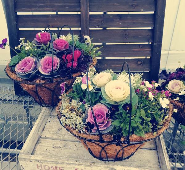 - ★お正月バージョン 洋風ミニ葉牡丹を使ったバスケット ★お花メインも承ります。