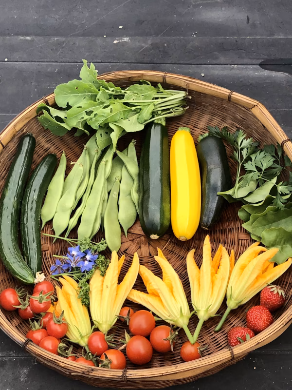 イチゴのハウスの片隅でいろいろな野菜を育てています。量がないので少しづつですが新鮮な野菜をお楽しみください。