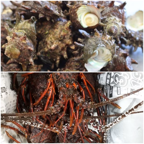 伊豆下田の海で育った活きの良いサザエと伊勢海老のセットです。