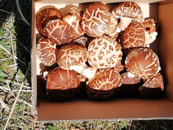 今が旬の原木生椎茸です。三寒四温の気候で力強く育っています。