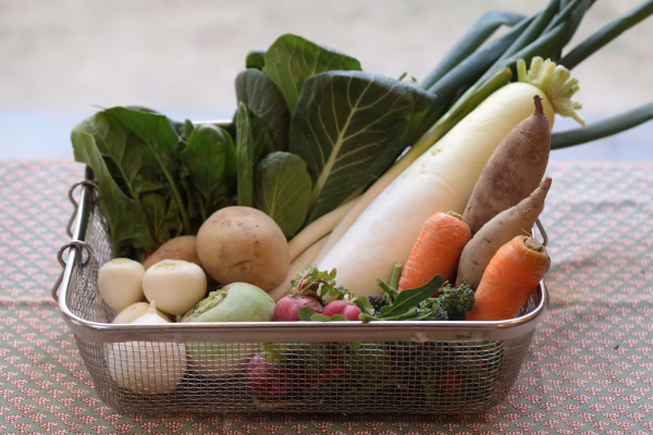 実際に届ける野菜の種類は「月別のオーガニック・しあわせ野菜セット」をご覧ください。