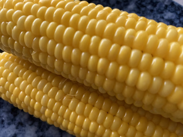 輝くような黄色の粒がぎっしり均一に並んでいて、甘くみずみずしいのが特徴です。ふかふか土壌のおかげで立派なスイートコーンが出来ました。