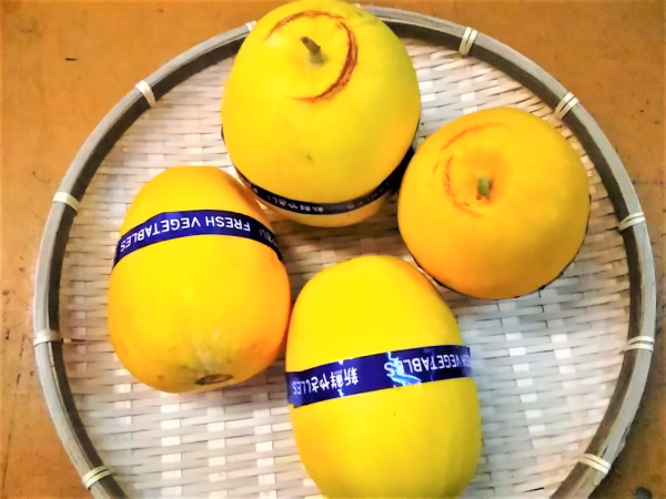 皆様にご提供するものは黄金真桑と言いまして、タキイ種苗品種の【金太郎】です。俵型で果重400g~600g程度あり果肉は柔らかめで白く甘みが強い品種です。