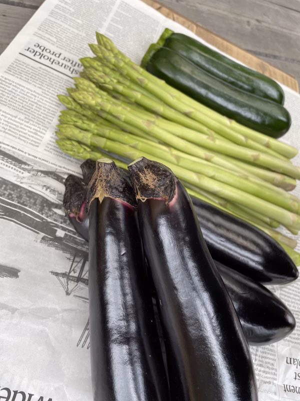 トロッとトロけるトロ茄子と夏野菜のセット フライ、煮浸し、焼き、どの調理法でもトロトロで甘味の強いお茄子です。ジャムにしたらまるでリンゴジャムのような驚き!!の風味に。 トロ茄子4本 アスパラガス2L,L,M混合500g ズッキーニ2本 ▼栽培/生産方法、こだわりは、植物性堆肥をたっぷり使い野菜本来の甘味や水分たっぷりのトロっとした茄子です。