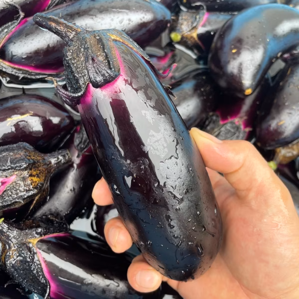 甘くみずみずしい茄子は、焼き茄子が一番おいしいです。他、揚げ茄子、てんぷら、麻婆茄子等様々な料理にお使いください。