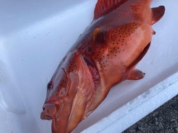 素潜りでの魚突きで捕獲しています。常に頭、エラ付近を狙うように意識していますが、体に撃つ事もあります。