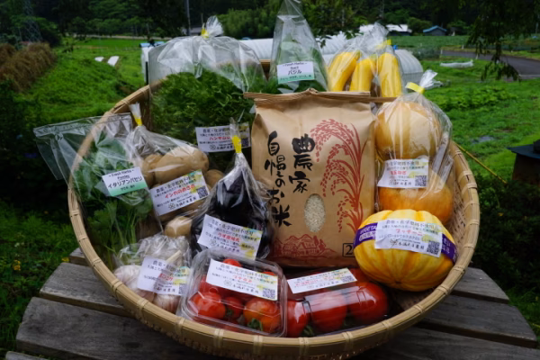 見ているだけでも楽しくかわいい野菜たちと、香り豊かなハーブ、冷めてもおいしいササニシキのセットです。