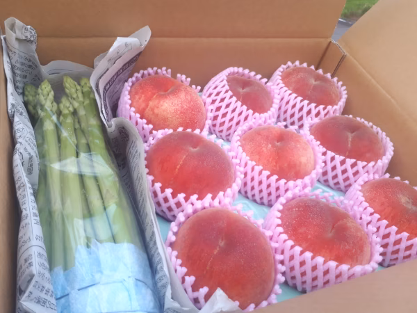 - 桃は涼しい室内で追熟、アスパラは水に挿して冷蔵庫で立てて保存がオススメ