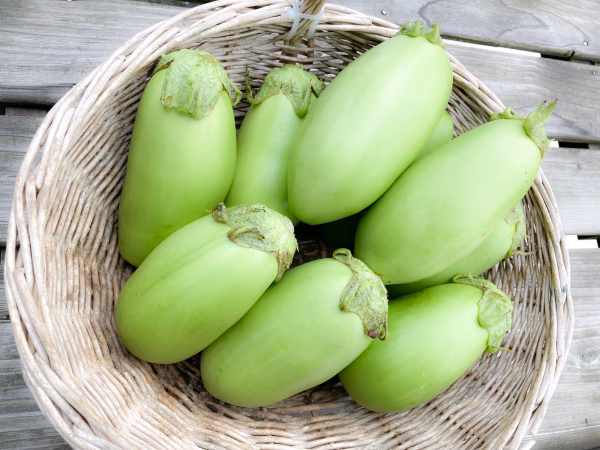今回のお野菜は近年認知度が上がってきていると思われる、白ナスです。