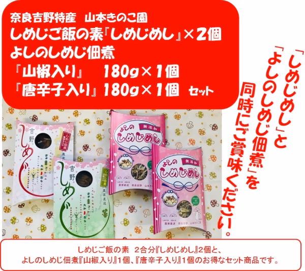 「よしのしめじ佃煮山椒入り」、「よしのしめじ佃煮唐辛子入り」