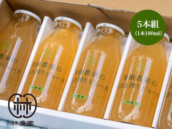 林農園の梨とカボスだけの「100%林農園産」のジュースです。梨の甘みとカボスの酸味がうまく調和した爽やかな味をお楽しみください。主原料とし梨果汁95%、カボス5%です。酸化防止剤などは使用せずカボスを使用。カボスは変色や発酵を防ぐ役割があります。