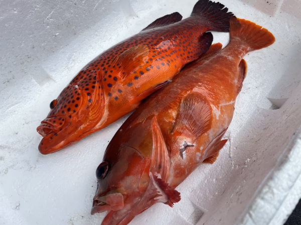 3. 【捕獲動画あり】傷あり ユカタハタ800gアカハタ900g 鱗、内臓処理済