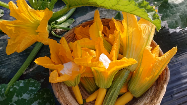 夜中に咲き始め朝には萎んでしまう貴重な花ズッキーニです。