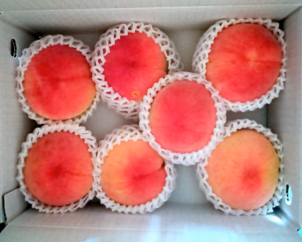 - 採れたての新鮮な桃を送ります。 到着後の追熟具合(常温での放置時間次第)で、カリカリの硬い桃からジューシーな柔桃まで、お好みで楽しめます。 食べる直前に冷蔵庫で冷やしていただくと美味しさが際立ちます。